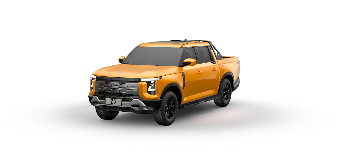 Standard equipment includes double airbags and Tire Pressure Monitoring. Choose mechanical or electronic park brake with auto hold. Door-lock logic - driving lock, flameout unlock, and collision-sensing unlock - adds peace of mind. Lighting is comprehensive: auto headlamp, front and rear fog lamps, high brake lamp, and LED DRLs for visibility in dust and rain. Exterior hardware - alloy hubs, body-color bumpers, roof rack, rear cargo protective rack, side pedal, and anti-rust bed coating - supports real-world use beyond the showroom.